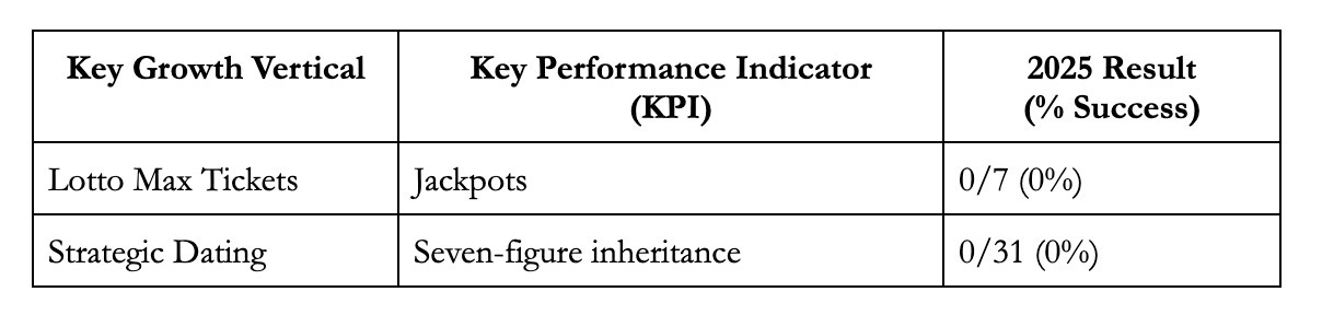 As we close the books on another fiscal year, I remain deeply indebted to you, the hundreds of investors (readers) who continue holding and promoting stock in a chronically unprofitable venture. Having long abandoned traditional means of increasing shareholder value, and despite the continued absence of strategic windfalls (see Table 1), morale at welktober HQ, where innovation trumps valuation, remains high.