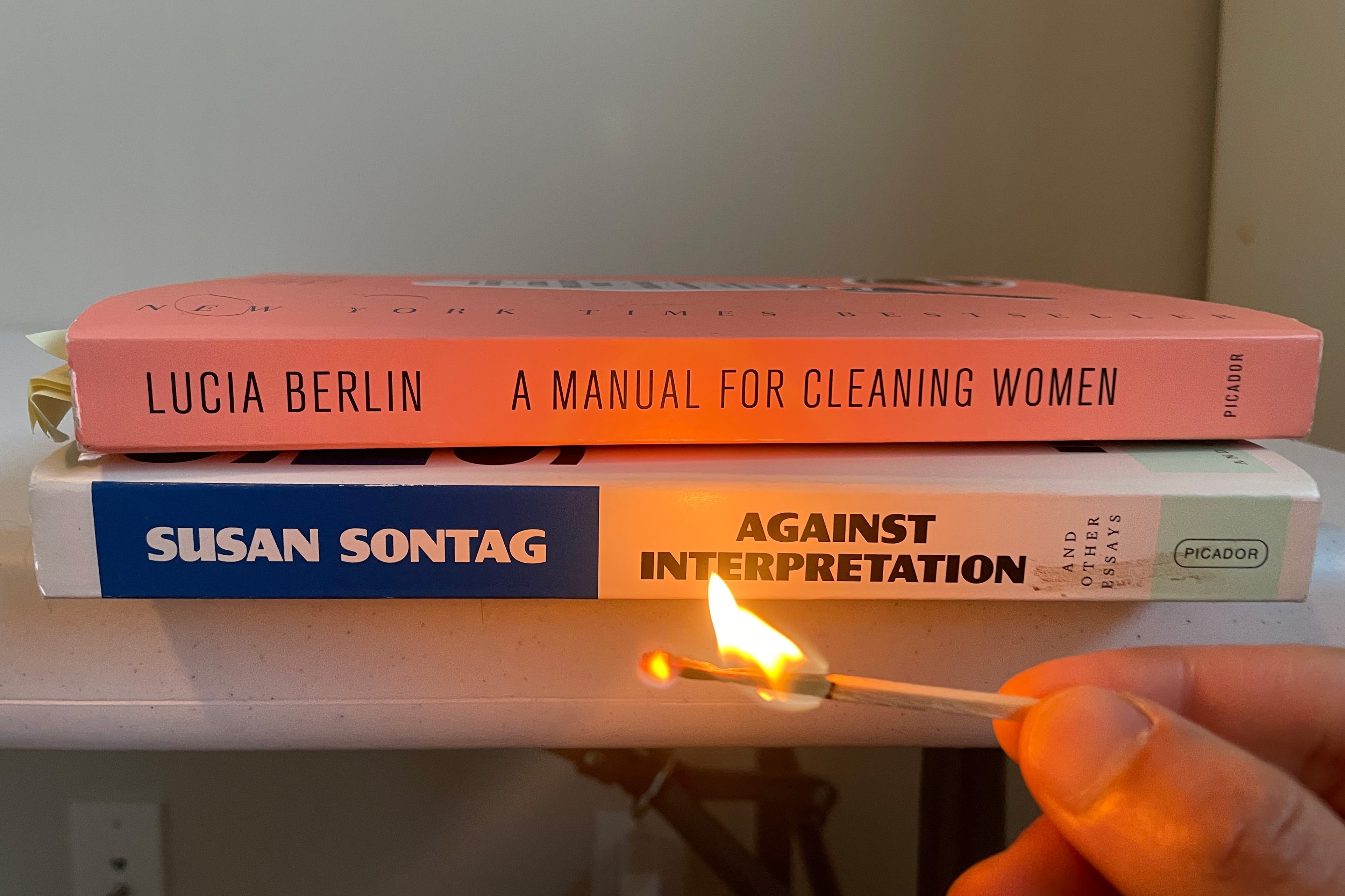 The essays on camp, Camus, and the title essay, burned steady and strong. I was too dumb or distracted to figure out how to light the others on fire, and frequently fell asleep while trying to do so.