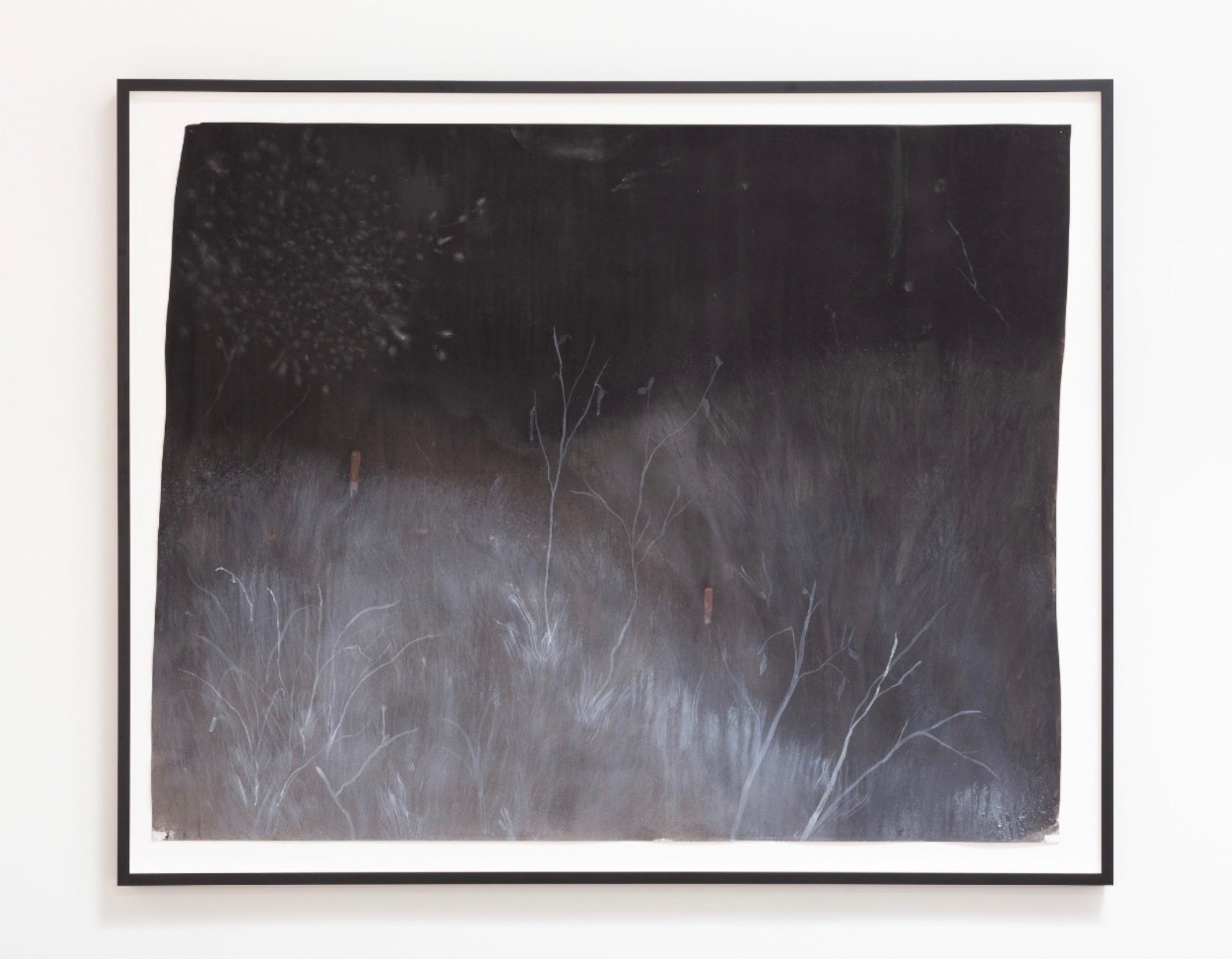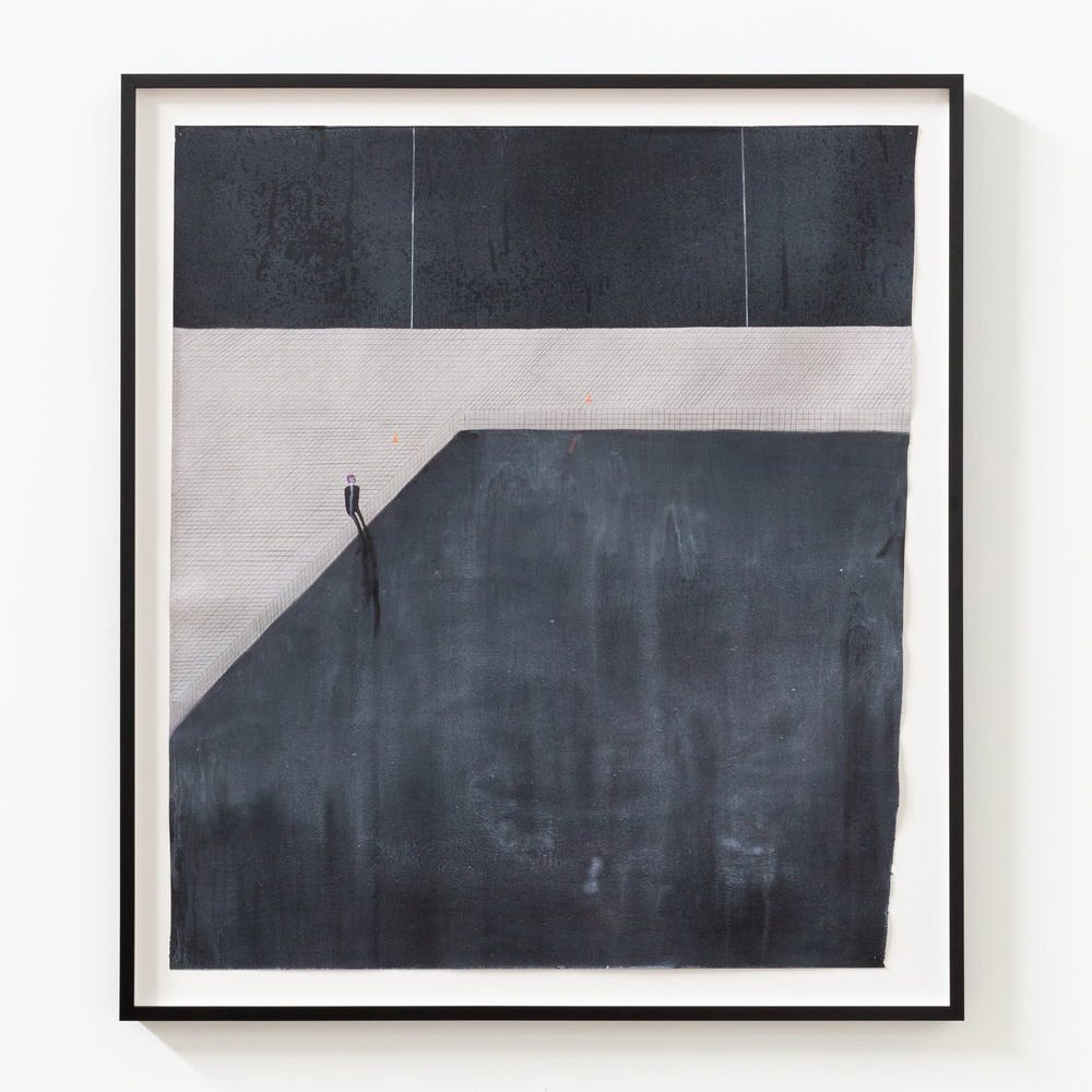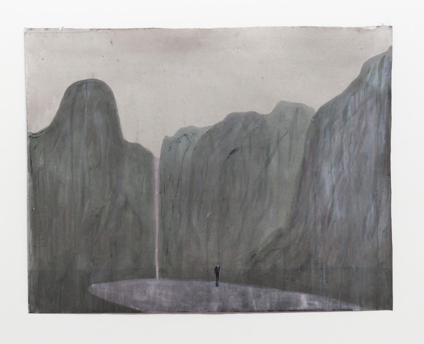 We are badgered by advice calling for mindfulness, to stay ashore rather than swim out into the reedy lakes of mind. If not harmful, the activity might be seen as indulgent. You trespassed into the dark place for a while, fine, but it’s time to come back to reality. Sulymenko’s works, however, gently encourage this trespass. It does not feel romanticized, for the settings are full of pitfalls: the abyss in Untitled (Deep) into which a figure appears to be losing themself; the tall grasses and deep forests hinting at some unpleasantness lurking; the jagged, unfinished edges of paper illustrating how little we understand of this unrefined space, where it ends and begins. The warped sense of scale in the compositions suggests that at any moment, the environment could swallow you whole. But perhaps this landmine-riddled backwater is one of few places we accept ourselves; there is an undeniable sense of bliss, if only we ignore the warnings and traipse on.