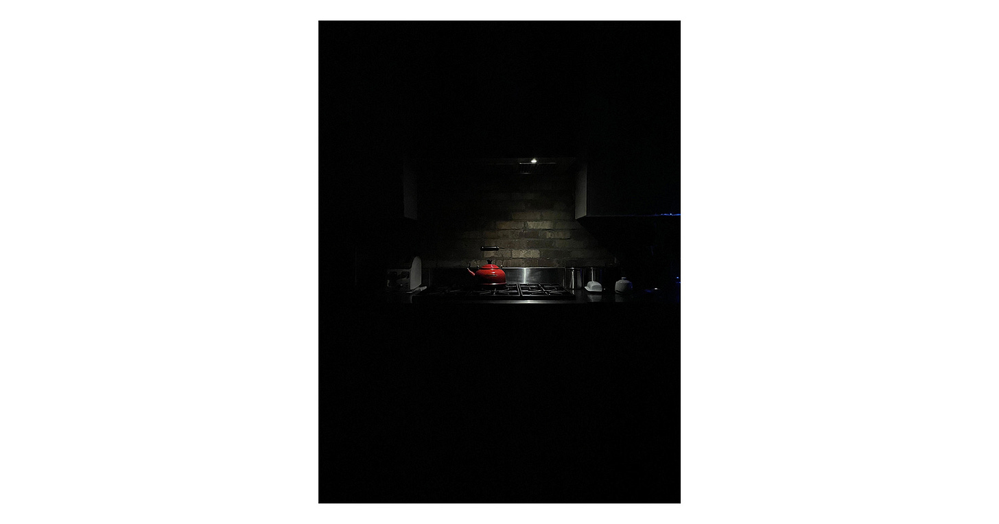 On the evening before my flight, I came home tipsy, 3am, banging pots against the stove and slamming the fridge door while preparing a snack. I used to do this as a teenager; an inadvertent, drunken signal to my parents that I’d survived the night. On this occasion, I imagined the sounds stirring them into a cozy half-dream in which I never left—where the friction of our co-existence became the norm and they had to encourage me to seek the world rather than my flocking to it impatiently. I lost track of my limbs, amid this hallucination, and elbowed the cast-iron to the floor. A heavy thud, a dent in the hardwood. A failed performance under the spotlight of the kitchen stove, a turd of Beyond Meat burger smushed against my sock. A glimpse of loneliness quickly undone by a lamp flicking on upstairs, the hurried footsteps of two bodies descending.